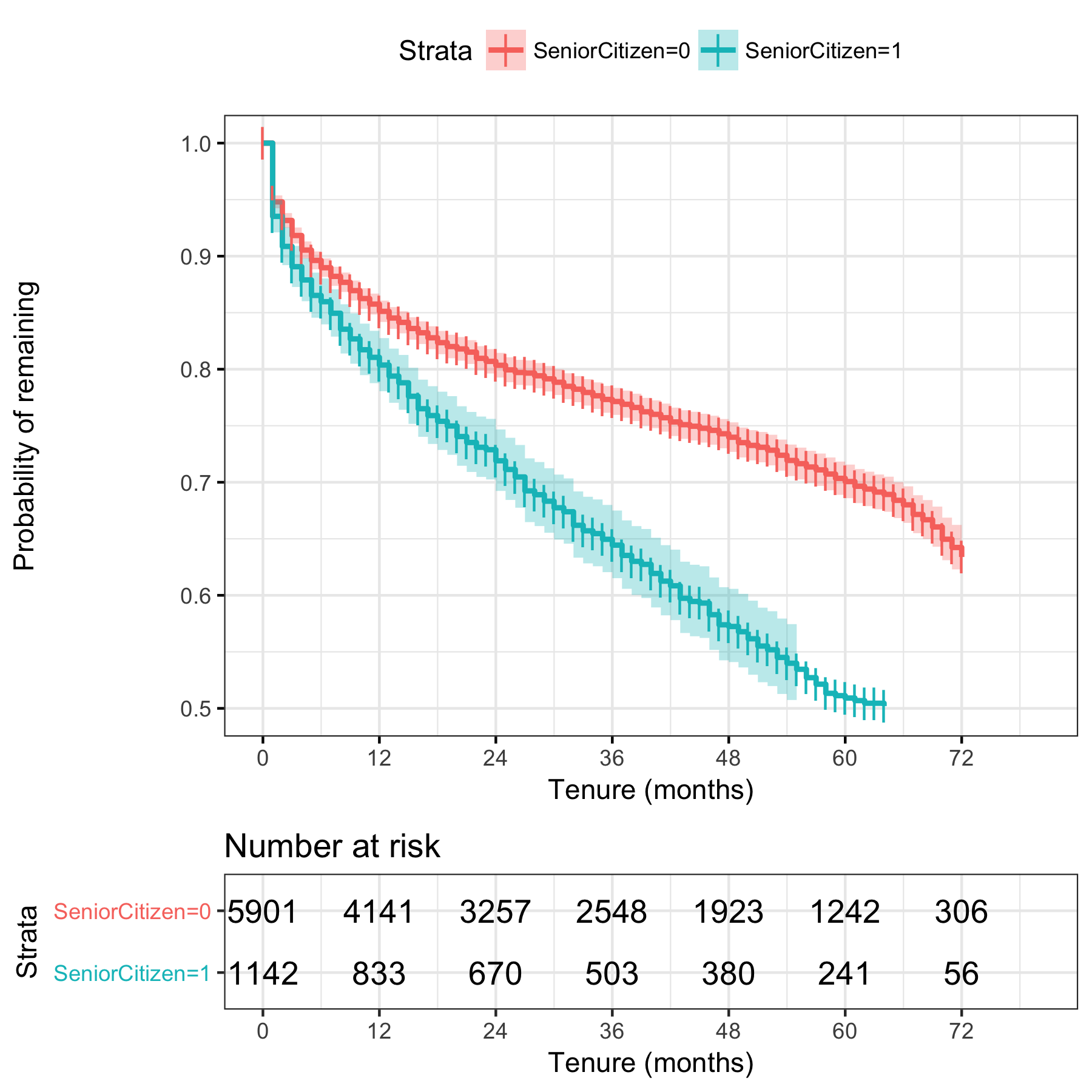 fit2 <- survfit(survival ~ SeniorCitizen, data = df.tel)